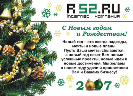 Дорогие друзья, Интернет-компания Р52.РУ от всей души поздравляет Вас с наступающими праздниками!