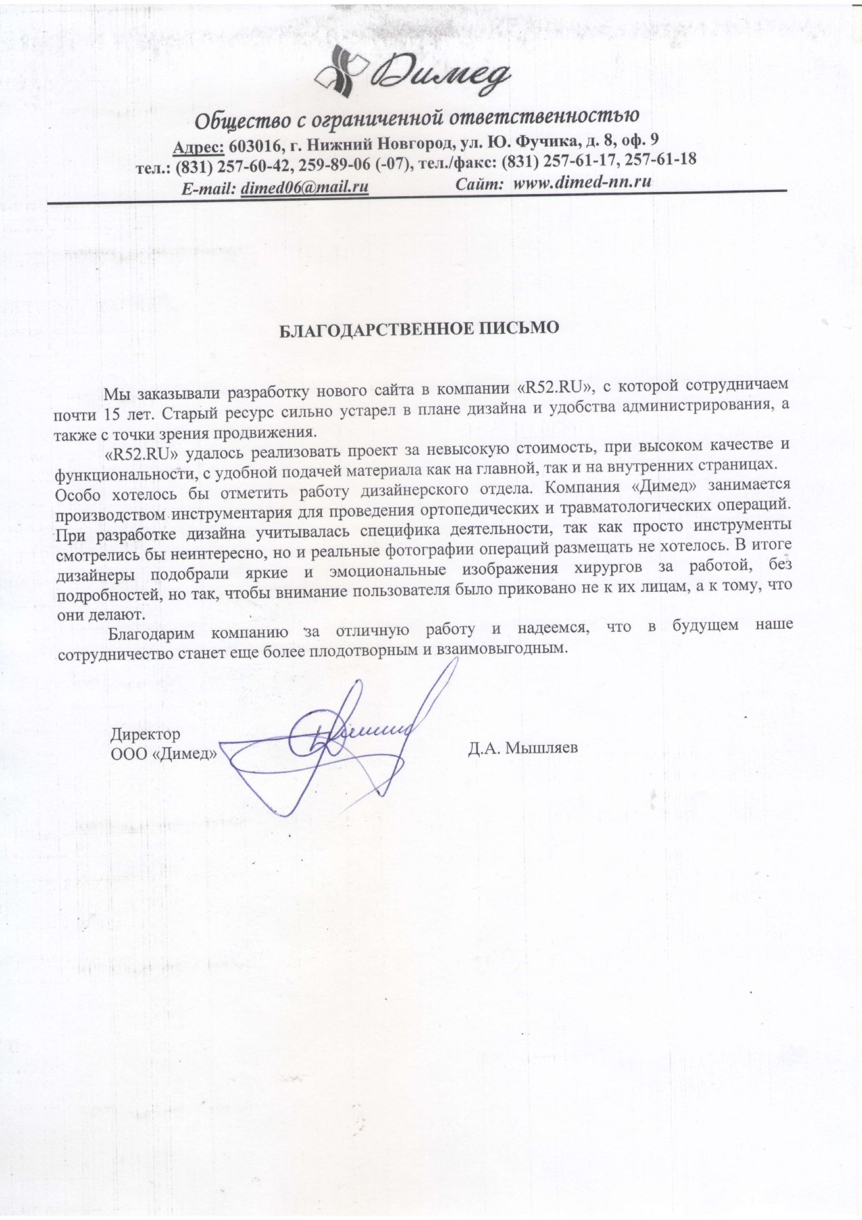 Благодарим сотрудников «R52.RU» за отличную работу и продолжаем наше сотрудничество в плане поддержки и продвижения сайта в сети интернет.